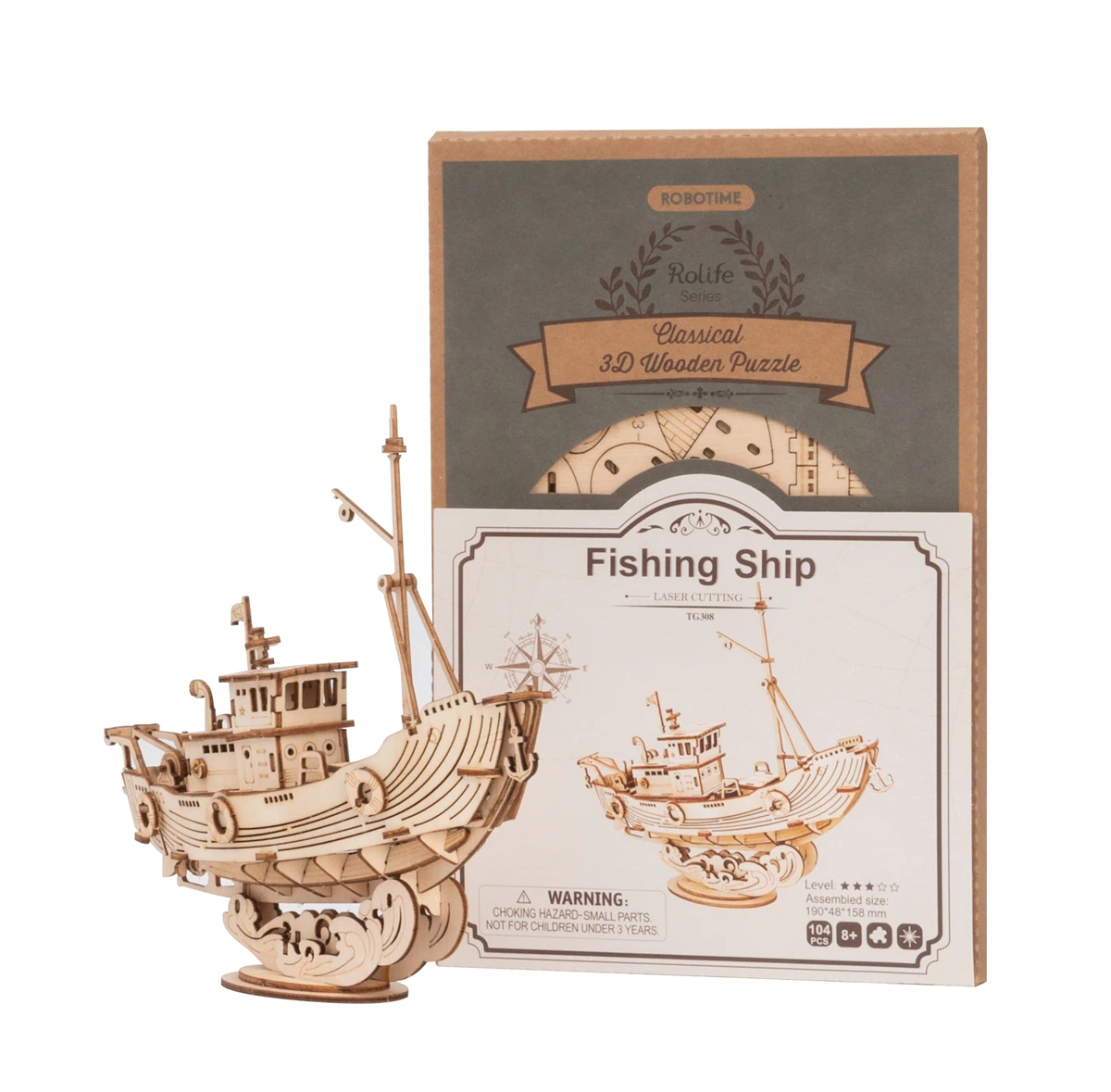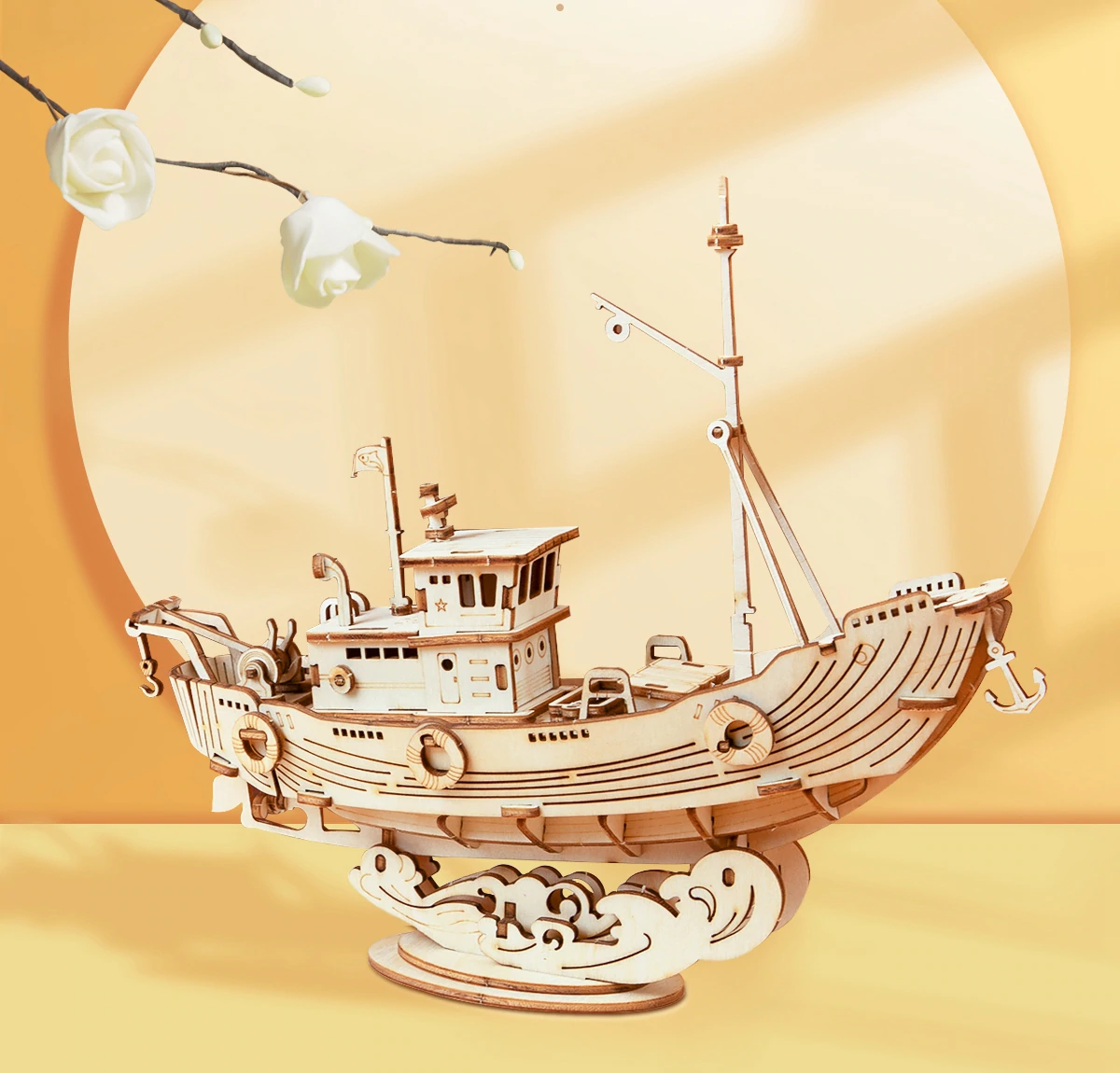 Barcă de Pescuit – Puzzle 3D din Lemn – 118 Piese
