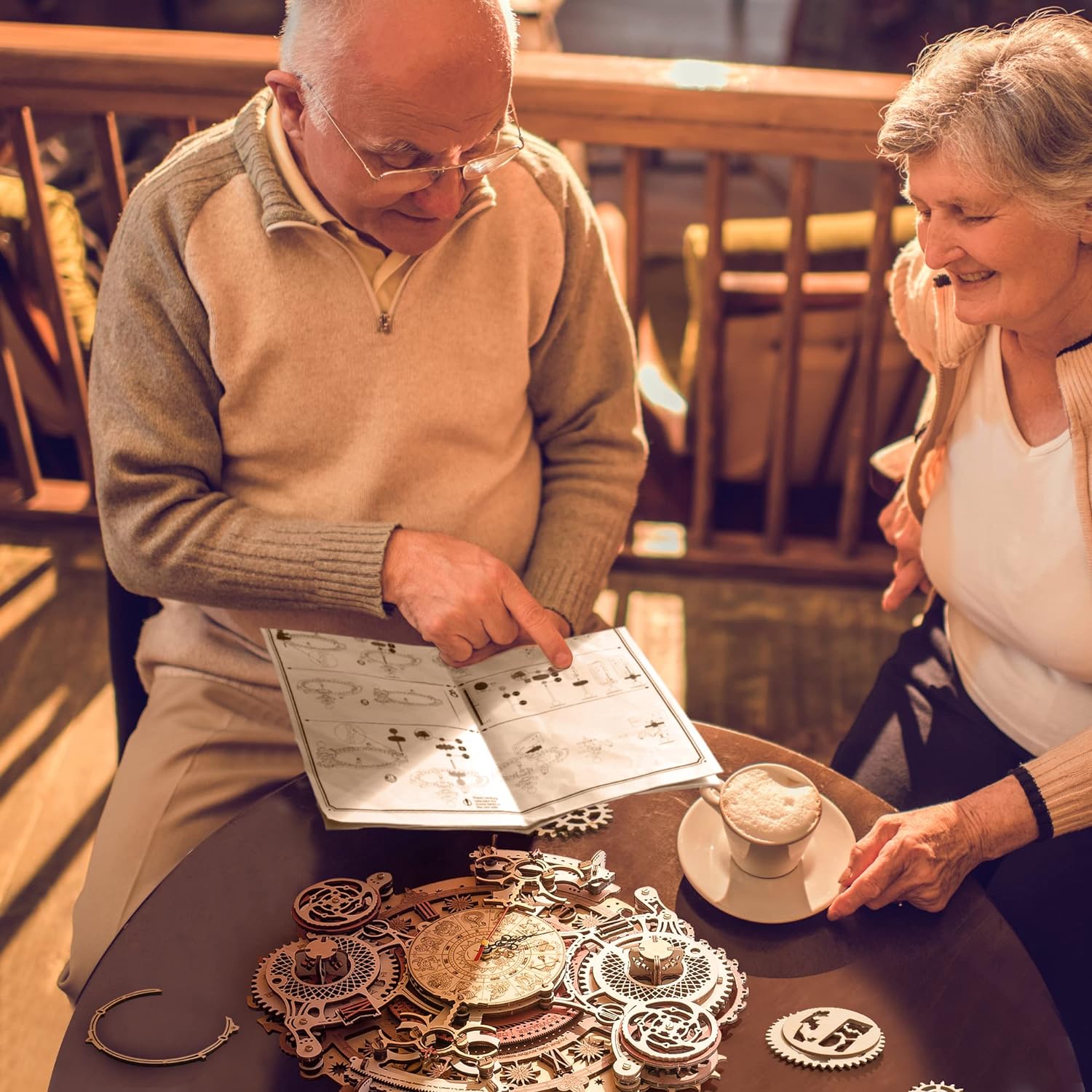 Ceas de Perete Zodiac – Puzzle 3D Mecanic din Lemn – 168 Piese