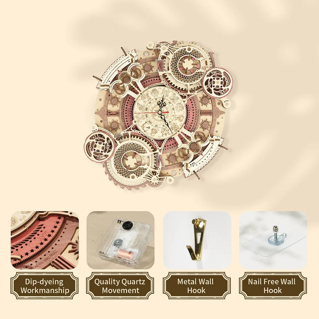 Modelul Ceas de Perete Zodiac LC601 de la ROKR este un Puzzle 3D Mecanic care combină arta asamblării cu funcționalitatea unui ceas. După ce ai finalizat construcția ceasului, vei descoperi că acesta este mult mai mult decât un simplu obiect decorativ. Ceasul funcționează cu precizie și poate fi utilizat într-un mod inedit. Mecanismul ceasului este silențios, asigurându-ți un somn liniștit și o funcționare eficientă în orice moment al zilei.