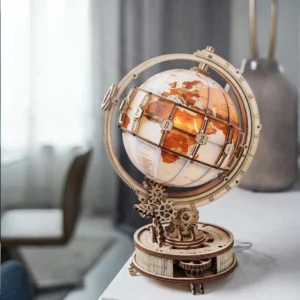 Glob Luminos Lampă de Veghe – Puzzle 3D Mecanic din Lemn – 180 Piese