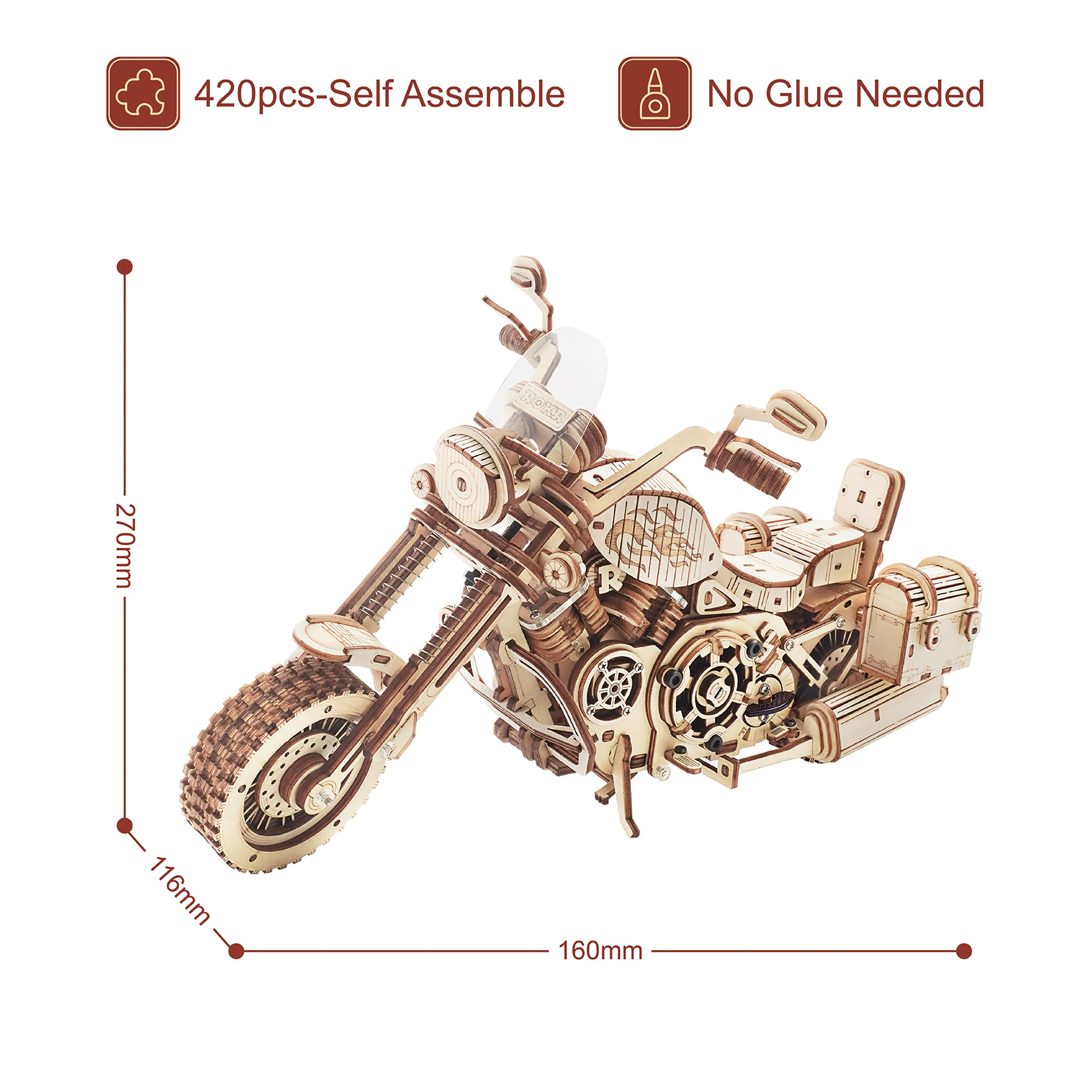 Motocicleta Cruiser – Puzzle 3D Mecanic din Lemn – 420 Piese